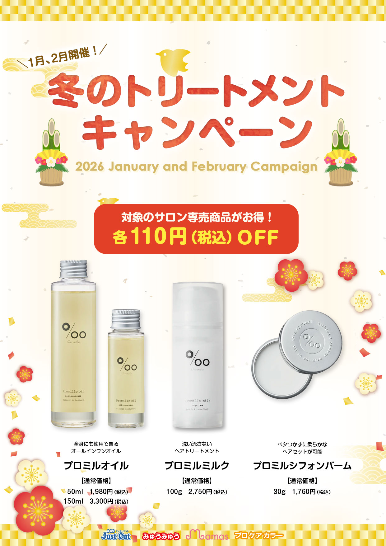 対象のサロン専売商品が各110円(税込み)OFFです!是非お得な機会にお求めください