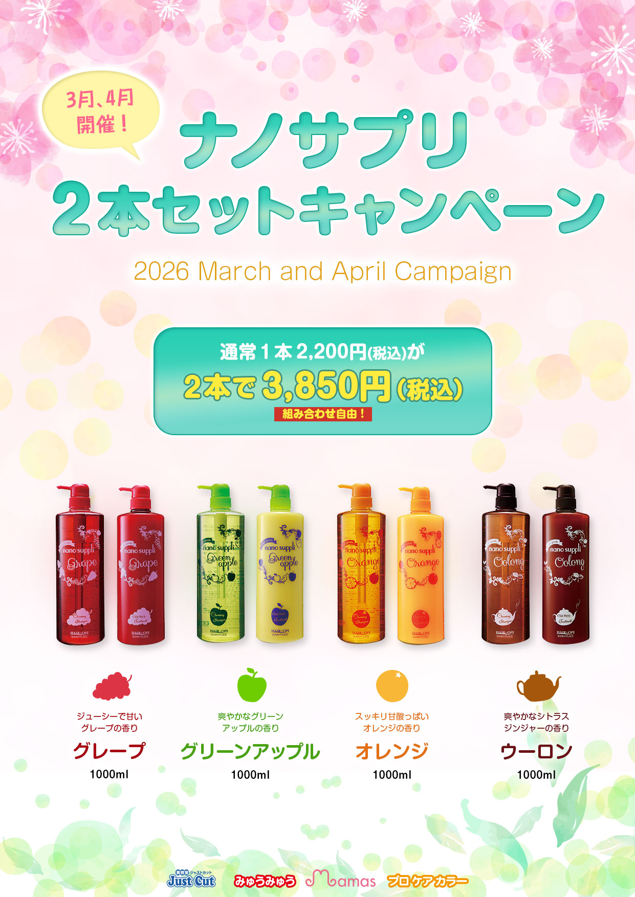 対象のサロン専売商品が各110円(税込み)OFFです!是非お得な機会にお求めください